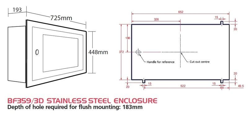 An attractive flush-mounting glazed stainless steel enclosure designed for use with SigTEL Master Controllers.Compatible products include ECU-4, ECU-8 and ECU-16 Master Controllers.Optional BF359/3CL (Camlock kit) or BF359/3SL (Electromagnetic solenoid lock kit) also available.Helps protect SigTEL controllers from unauthorised access/tampering.High quality brushed stainless steel finish.Picture shows a BF359/3D enclosure with a SigTEL 4 Line Controller.