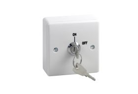 Double pole maintained keyswitch ideal for overriding door access control systems. The key is removable in either the 'on' or 'off' position.FeaturesSingle gangWhite plasticDouble-pole, double-throw contacts (DPDT)Keyed alikeMaintainedIncludes 2 keys