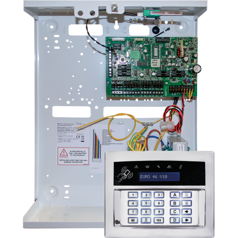 Combined Euro 46 Large Panel with keypad - modem not includedPRODUCT FEATURESHybrid 76 zone control panelFully menu-driven programmingConnect with the vast range of communication optionsRemote maintenance with Pyronix InSite UDL softwareGrade 2 & 3 security with a fully compliant appConnect from anywhere with the ProControl+ AppNo on-site IT configurationSupplied with a EUR-064 keypad. Product shown with optional chrome keypadFREE PyronixCloud subscription for first 12 months