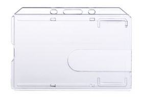 Rigid polycarbonate landscape cardholderThis cardholder is ideal for allowing proximity cards or visitor passes to be attached to a lanyard or carabineer. The card is securely held in place but can easily be removed as and when required.FeaturesTransparent card holder with thumb slot for easy removal and insertion of cardRetention clip ensures that the card does not fall out of the holder during normal useCan be used with badge clip, metal bead chain, lanyard or carabiner badge reelSupplied in pack of 100