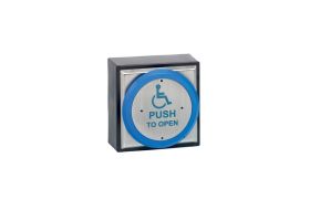 Blue surface mounted weatherproof DDA compliant push to exit button with disabled logo symbol. The 360 degree all active push plate means that the lock will release wherever pressure is applied to the stainless steel button.FeaturesBlue plastic rimStainless steelABS plastic back box for surface mountCan be flush mounted using 35mm single gang back boxWeatherproof (IP55)DDA compliantChange over contacts85mm button118mm(W) x 118mm(H)