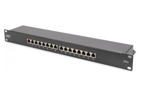 Digitus DN-91616S-B. Networking standards: IEEE 802.3af, IEEE 802.3at, Connector(s): RJ-45, Connector contacts plating: Gold. Product color: Black, Material: Galvanized steel, Mounting: Rack mounting. Package width: 19.7" (500 mm), Package depth: 5.31" (135 mm), Package weight: 2.34 lbs (1.06 kg). Country of origin: China