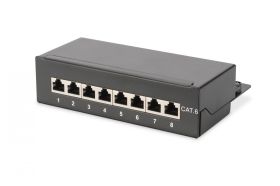 Item name | Desktop CAT 6 Patch Panel, shielded Class E, 8-port RJ45, 8P8C, LSA, black, 482x44x109 |