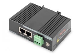 Digitus DN-651112. Ethernet interface type: Gigabit Ethernet, Ethernet LAN data rates: 10,100,1000 Mbit/s, Networking standards: IEEE 802.3at. Product color: Black, LED indicators: PoE, Power, Power protection features: Over voltage, Short circuit. Power over Ethernet (PoE) voltage: 55 V, Output power: 60 W, Power consumption (max): 3 W. Weight: 10.6 oz (300 g), Dimensions (WxDxH): 3.03 x 4.06 x 1.26" (77 x 103 x 32 mm). Number of products included: 1 pc(s)