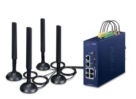 PLANET Industrial 5G NR Cellular. Product color: Blue, International Protection (IP) code: IP30. Antenna type: External. Width: 1.97" (50 mm), Depth: 5.31" (135 mm), Height: 5.31" (135 mm)