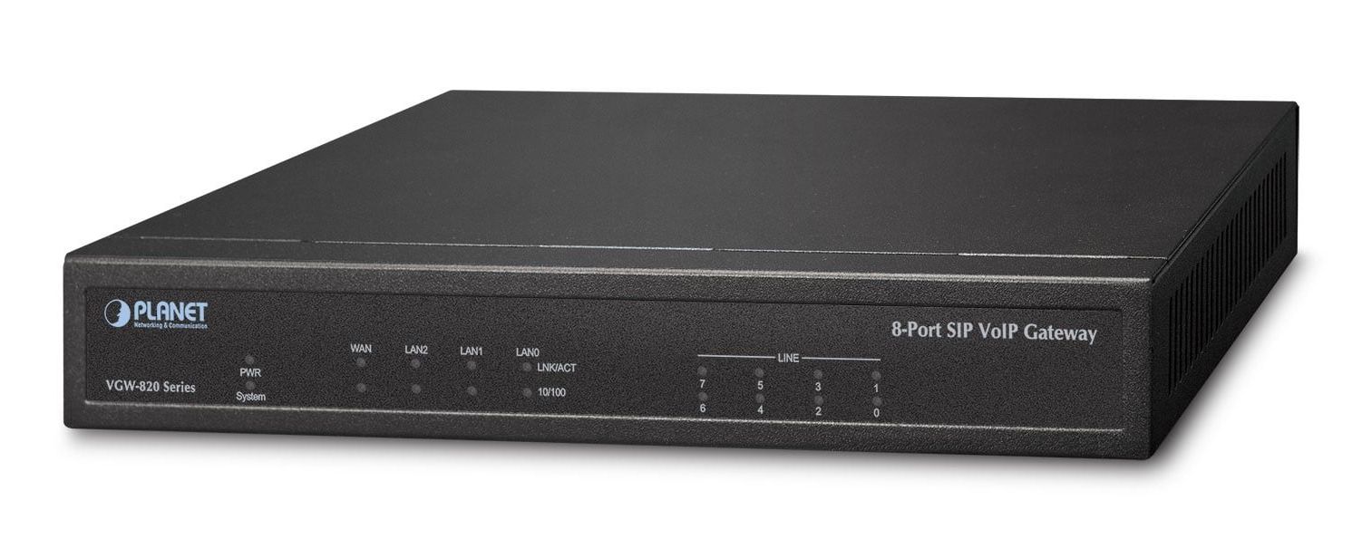 Item name | Planet VGW-820FS 8-Port SIP VoIP Gateway (8*FXS): IETF SIP 2.0, T.38/T.30, STUN/Outbound Proxy, TLS/SRTP Security, VLAN, QoS, SNMP, TR069, Caller ID, DND, Three |