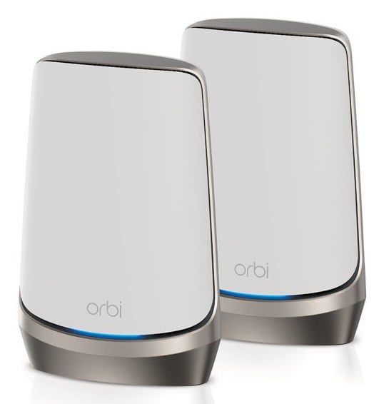 NETGEAR RBKE962. Product color: Gray, White, Antenna type: Internal, LED indicators: Power. Wi-Fi band: Quad-band (2.4 GHz / 5 GHz-1 / 5 GHz-2 / 6 GHz), Top Wi-Fi standard: Wi-Fi 6 (802.11ax), WLAN data transfer rate (max): 4800 Mbit/s. Processor frequency: 2.2 GHz, Internal memory: 1000 MB, Flash memory: 512 MB. AC adapter output voltage: 19 V, AC adapter output current: 3.16 A. Number of products included: 2 pc(s), Number of units included: 2 pc(s)