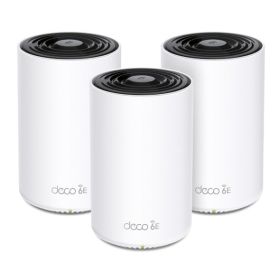The TP-Link AXE5400 Tri-Band Mesh Wi-Fi 6E System is an advanced networking solution designed to deliver extensive wireless coverage of up to 670 square meters, making it ideal for larger homes. This 3-pack system features a modern and sleek white design that seamlessly integrates into any home decor. Each unit is equipped with internal antennas, ensuring that aesthetics are not compromised while providing powerful connectivity.