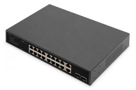 Digitus DN-95358. Switch type: Unmanaged. Basic switching RJ-45 Ethernet ports type: Gigabit Ethernet (10/100/1000), Basic switching RJ-45 Ethernet ports quantity: 16. Full duplex. MAC address table: 8000 entries, Switching capacity: 40 Gbit/s. Networking standards: IEEE 802.3, IEEE 802.3ab, IEEE 802.3af, IEEE 802.3at, IEEE 802.3u, IEEE 802.3x, IEEE 802.3z. Power connector: AC-in jack. Power over Ethernet (PoE). Rack mounting, Form factor: 1U