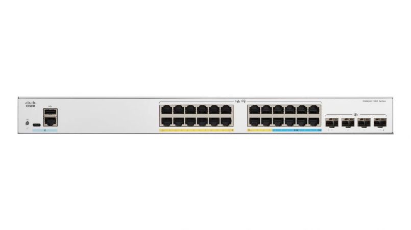 Cisco Catalyst C1300-24MGP-4X. Switch type: Managed, Switch layer: L2/L3. Basic switching RJ-45 Ethernet ports quantity: 16. MAC address table: 16000 entries, Switching capacity: 152 Gbit/s. Networking standards: IEEE 802.1D, IEEE 802.1Q, IEEE 802.1ab, IEEE 802.1s, IEEE 802.1w, IEEE 802.1x, IEEE 802.3, IEEE.... Power over Ethernet (PoE). Rack mounting