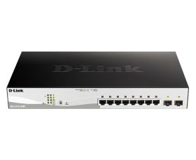 D-Link DGS-1210-10MP. Switch type: Managed, Switch layer: L2. Basic switching RJ-45 Ethernet ports type: Gigabit Ethernet (10/100/1000), Basic switching RJ-45 Ethernet ports quantity: 8, Installed SFP modules quantity: 2. Full duplex. MAC address table: 8000 entries, Switching capacity: 20 Gbit/s. Networking standards: IEEE 802.3, IEEE 802.3ab, IEEE 802.3af, IEEE 802.3at, IEEE 802.3az, IEEE 802.3u, IEEE 802.3x, IEEE.... Power over Ethernet (PoE)