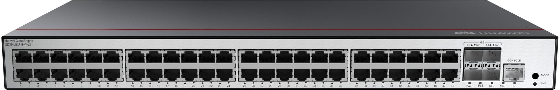 CloudEngine S5735-L48LP4S-A-V2 - Managed - L3 - Gigabit Ethernet (10/100/1000) - Power over Ethernet (PoE) - Rack mounting - 1U - 48x RJ-45 - 4x SFP - 104 Gbps switching capacity - 1U - VLAN - Static route - PoE