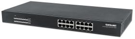 Intellinet 560993. Switch type: Unmanaged, Switch layer: L2. Basic switching RJ-45 Ethernet ports type: Gigabit Ethernet (10/100/1000), Basic switching RJ-45 Ethernet ports quantity: 16. Full duplex. MAC address table: 8192 entries, Switching capacity: 32 Gbit/s. Networking standards: IEEE 802.3, IEEE 802.3ab, IEEE 802.3af, IEEE 802.3at, IEEE 802.3u, IEEE 802.3x. Power over Ethernet (PoE). Rack mounting, Form factor: 1U