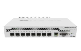 The CRS309-1G-8S+ is a very compact, yet powerful networking switch. It has eight SFP+ slots, supporting up to 10 Gbit module in each, which results in a total switching capacity of 162 Gbps and total non-blocking throughput of 81 Gbps.