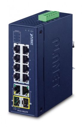 Item name | Planet IFGS-1022TF IP30 Industrial 8-Port 10/100TX + 2-Port Gigabit TP/SFP Combo Ethernet Switch (-40 to 75 C, dual redundant power input on 9-48VDC/24VAC termi |