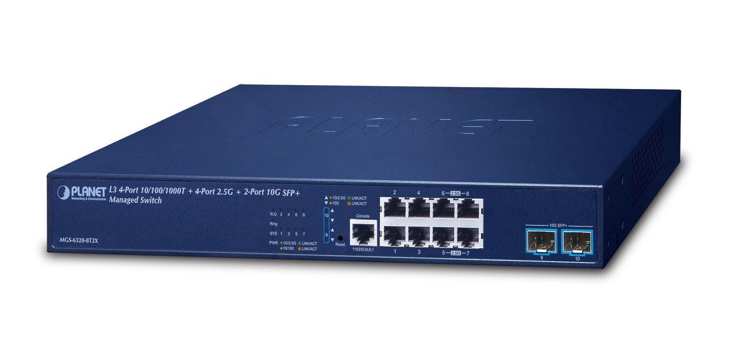 Item name | Planet MGS-6320-8T2X L3 4-Port 10/100/1000T + 4-Port 2.5G + 2-Port 10G SFP+ Managed Switch (ERPS Ring, CloudViewer app, MQTT, Cybersecurity features, Hardware L |