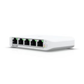 Build and expand your network with the UniFi® Switch, part of the Ubiquiti Networks® UniFi Enterprise System. The UniFi Switch, model USW-Flex-Mini, is a smart managed Gigabit switch. It offers 5 RJ45 Ethernet ports, providing 1 Gigabit links to your devices. Power up the USW-Flex-Mini with the included USB Type-C power adapter or with 802.3af PoE Ethernet in port 1.