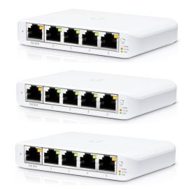 Ubiquiti UniFi Switch Flex Mini (3-pack). Switch type: Managed. Basic switching RJ-45 Ethernet ports type: Gigabit Ethernet (10/100/1000), Basic switching RJ-45 Ethernet ports quantity: 5. Switching capacity: 10 Gbit/s. Networking standards: IEEE 802.3af, IEEE 802.3at. DC input voltage: 5 V. Power over Ethernet (PoE)