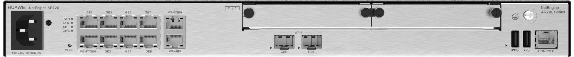 Item name | Huawei Router NetEngine AR720, 2*GE combo WAN, 8*GE LAN, 2*USB 2.0, 2*SIC |