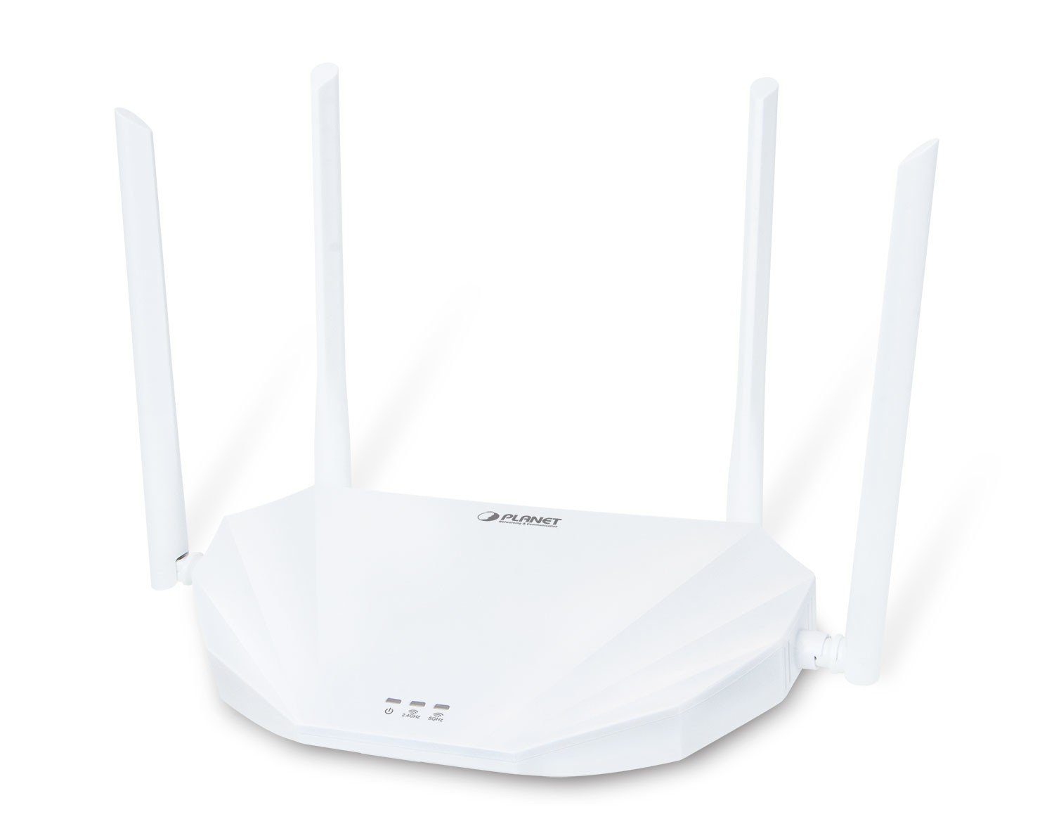 PLANET Wi-Fi 6 11AX 1800Mbps. Ethernet LAN interface type: Gigabit Ethernet. Product color: White, LED indicators: LAN, Power, WAN, WLAN. Antenna design: External. Power source type: DC. Width: 9.21" (234 mm), Depth: 5.83" (148 mm), Height: 1.22" (31 mm)
