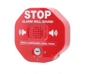 Multifunction door alarm helps prevent unauthorised exits/entriesBeeps and flashes when activatedAdd warning in second language with provided labels (21 languages)95/105 dB alarm when activatedSet to sound for 30 seconds, 3 minutes or continuousCan be used as an annunciatorEasy to installMount on top, right, left or next to almost any doorLow battery warning (9-VDC alkaline battery included)Three year guarantee against breakage of polycarbonate in normal use (one year on electro mechanical and electronic components)Incorporate a 12/24 VDC connection136 mm H x 136 mm W x 50 mm D