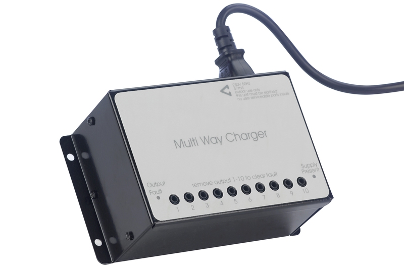 A ten-way plugtop charger designed for use with Quantec's QT412 range of IR/RF transmitters.Can simultaneously charge up to ten transmitters.Connects to a standard 13A mains socket using the standard IEC lead suppliedCan be wall or desk mounted to suit the transmitter storage/charging requirements of a particular site.Fully recharged transmitters can be left connected to the charger with no detrimental effect.14 hour typical charging time (full cycle). Indicators confirm when charging is complete.10-way version also available (order code QT424/10).