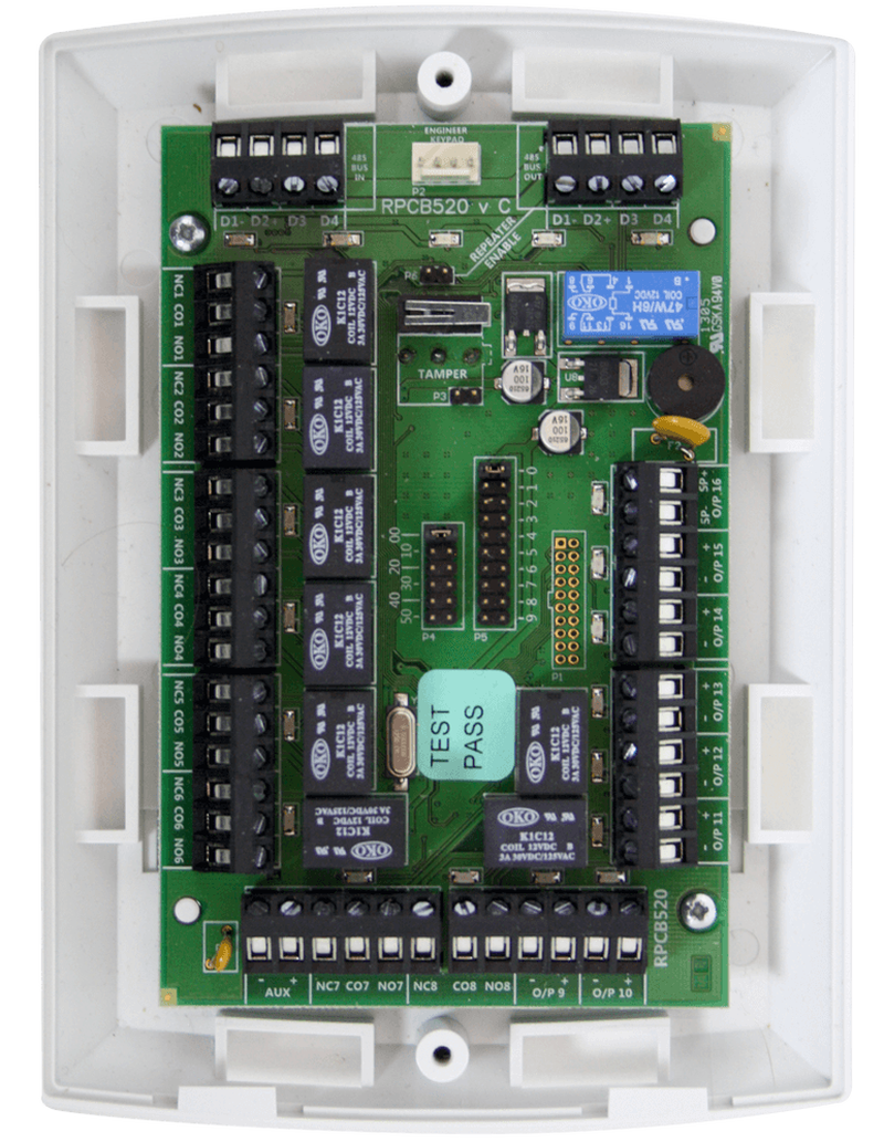 PRODUCT FEATURES16 outputs comprising 8 relays (NO or NC) and 8 transistorisedLED indications on each outputCapable of being plugged onto Intelligent PSUWired direct to RS-485 BUS