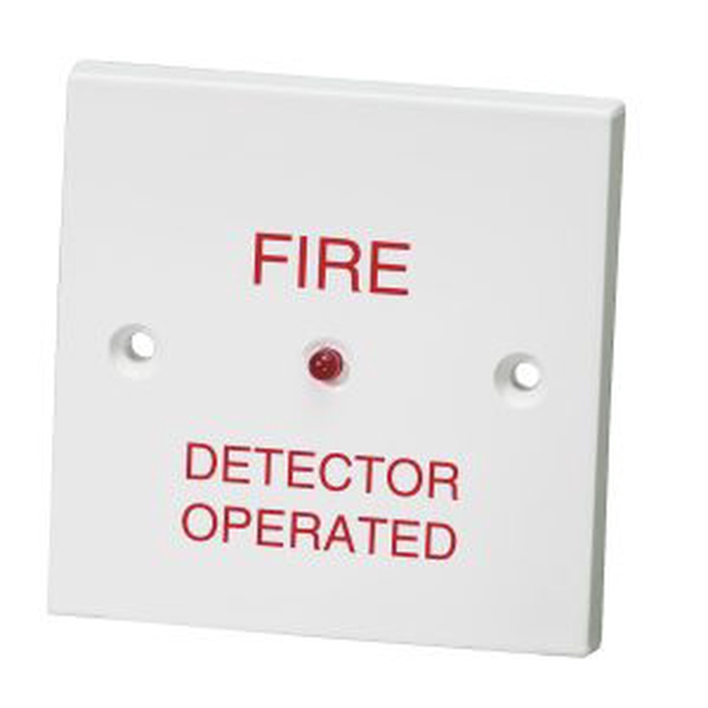 DescriptionRemote indications provide the status of a single or groups of fire detectors to fire marshals and firefighters.Indication is provided via an LED with a wide area of illumination and high on/off contrast. The standard version is a single gang unit with ‘Fire Detector Operated’ text.FeaturesAvailable as a flush mount unit or surface mount with back box includedDirect fit to a single gang deep back boxWeatherproof versions also available on request for outdoor applications