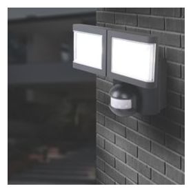 LAP Indoor & Outdoor LED Twin Floodlight With PIR Sensor Black 2 x 10W 1900lm