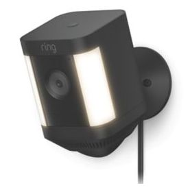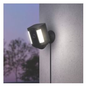 Spotlight camera with adjustable viewing angle. Features colour night vision, customisable motion detection, and a pair of bright, motion-activated lights. Ideal for use in out-of-sight areas. Can be used with Quick Release Battery Pack (sold separately) to switch between plug-in and battery power.