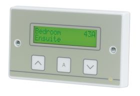 A 16 character x 2 line display used to indicate incoming calls in corridors, staff rooms, nursing stations, etc.Includes an onboard sounder and buttons to accept, scroll through and manually divert calls. Shows call type, call location and (depending on the device used to make the call) the User ID or name of the person calling.Highest priority calls are shown first with a message saying how many calls are waiting.Flash and sounder rates intensify to reflect the urgency of incoming calls. Adjustable contrast and volume controls.External sounder connection.