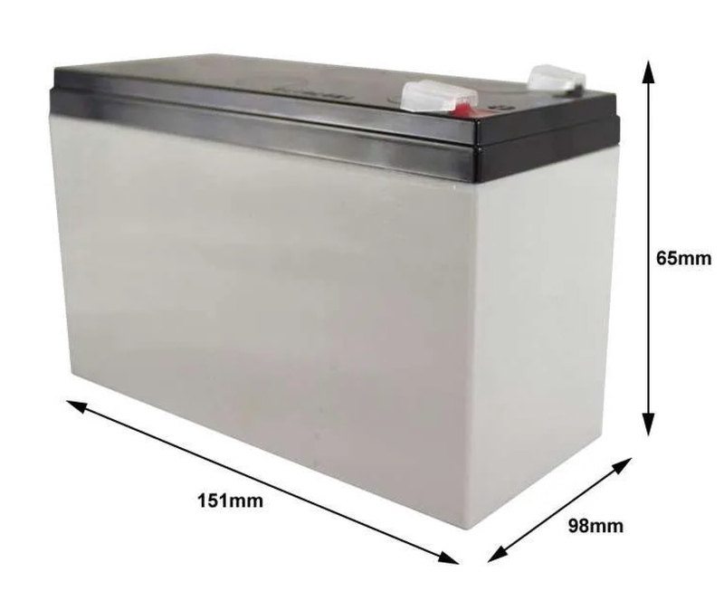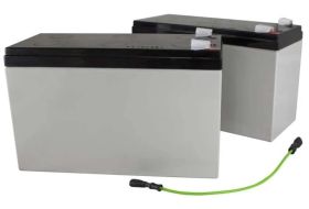 A high-quality 24V 7.0Ah Valve Regulated Sealed Lead Acid battery pack.Comprises 2 x 12V rechargeable batteries and a link wire.Each battery measures 151 W x 98 H x 65 D mm.Quick connect 4.75mm ‘Faston’ type terminals.