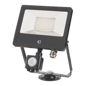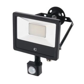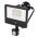 Flicker-free, colour-switch, adjustable floodlight. Features 360° rotation, PIR sensor (IP65 override), and cast aluminium body. First mount, detachable circular bracket. 120° beam angle and 180° tilt. Wide temperature range of -40 to +40°C. Ideal for coastal areas.