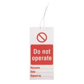 Handy pre-drilled, easy fix safety tags. Makes equipment status instantly visible.