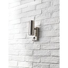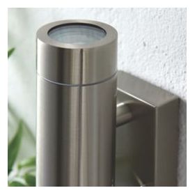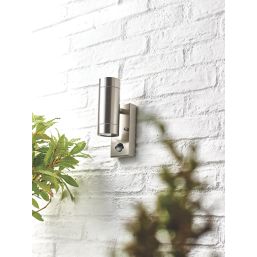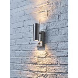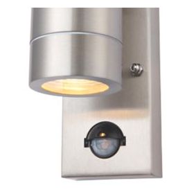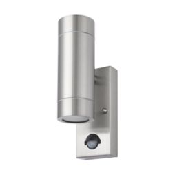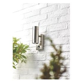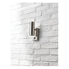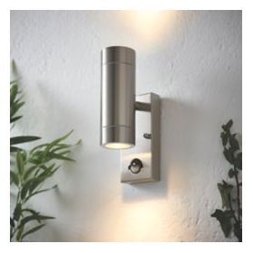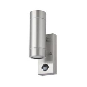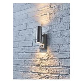 Stainless steel construction. Projects light both upwards and downwards and is fitted with a PIR sensor.