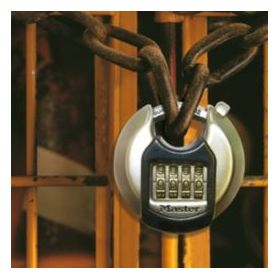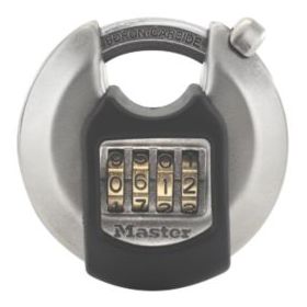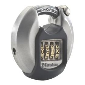 Stainless steel body with octagonal boron carbide shackle. Resettable with 10,000 combinations.