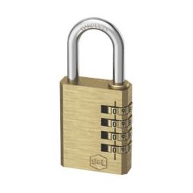 Brass body with steel shackle. 4 brass dials for quick keyless convenience. Suitable for indoor use.