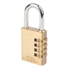 Brass body with steel shackle. 4 brass dials. Suitable for indoor use.