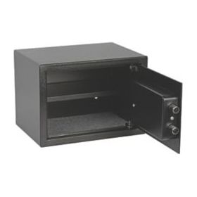 Durable steel construction. Suitable for storing documents, jewellery and cash. 2 x 20mm locking bolts. Adjustable shelf provides additional storage.