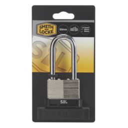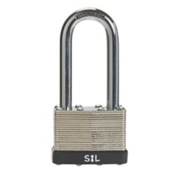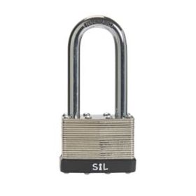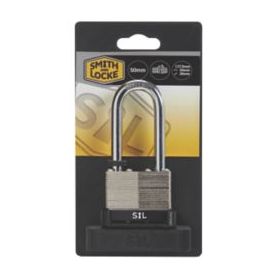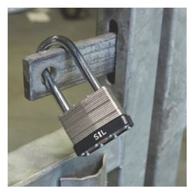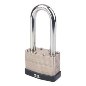 Laminated, water-resistant hardened steel body and shackle with PVC bumper.