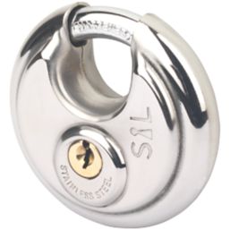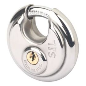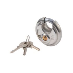 Stainless steel body with hardened steel shackle. Suitable for indoor and outdoor use. 3 keys supplied.