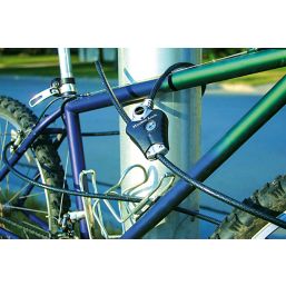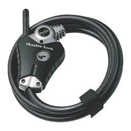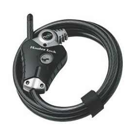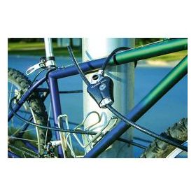 Python adjustable locking cable with locking mechanism that holds cable tight in any position. Features 10mm diameter braided steel for maximum strength and flexibility. Integrated wafer cylinder offers maximum pick resistance. The rust-resistant lock and vinyl coated cable provide superior weather and scratch resistance. Strap holds excess cable for compact storage. 4 keys supplied.