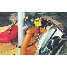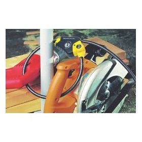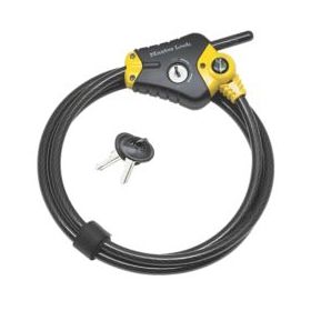 Python adjustable locking cable with locking mechanism that holds cable tight in any position. Features 10mm diameter braided steel for maximum strength and flexibility. Integrated pin tumbler keyed locking mechanism provides superior pick resistance. The rust resistant lock and vinyl coated cable provide superior weather and scratch resistance. Strap holds excess cable for compact storage. 4 keys supplied.