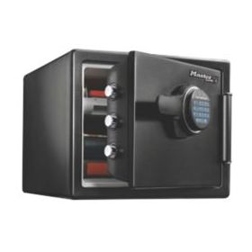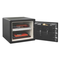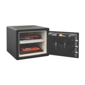 Water-resistant and fire safe rated to 60mins to protect documents, valuables and digital media. Withstands a 4.5m drop during a fire and remains closed. ETL verified water resistance up to 8" for 24 hours protection against flooding. Features 3 x large 1" bolts, pry-resistant hinge bar and digital lock, ensuring protection from forced entry. Supplied with key hooks and a door tray for easy to misplace items and bolt-down kit to prevent unauthorised removal.