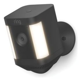 Spotlight camera with adjustable viewing angle. Features colour night vision, customisable motion detection, and a pair of bright, motion-activated lights. Ideal for use in out-of-sight areas. Includes quick release battery pack.