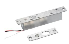 Micro 150mm solenoid boltThe compact size of this solenoid bolt makes it ideal for installations where space is limited and light usage is expected. It offers door position monitoring and variable re-locking delay.FeaturesFail safe operation (power to lock)Door position monitoringVariable re-lock delay (0, 3, 6 or 9 seconds)Compact designMortice installationLow holding current