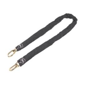 Weather-resistant, zinc-plated, hardened steel chain. Hexagonal shackle for increased security. Oxford cloth cover prevents scratching. Suitable for many applications such as securing bikes and motorcycles.