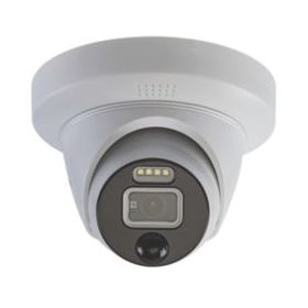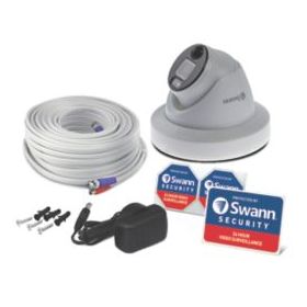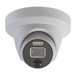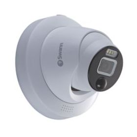 Security camera with red and blue flashing lights, bright sensor spotlights and sirens to prevent crime. Night2Day allows colour video at any hour, up to 10m Powerful night vision up to 40m. 4K ultra HD video for detailed viewing, can be watched live when connected to a CCTV kit and smart device. Features heat and motion detection and microphone for audio capture.