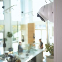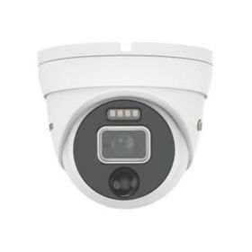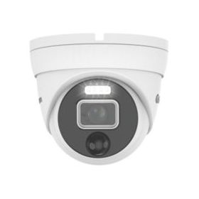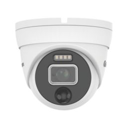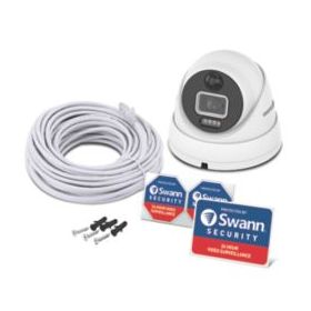 Security camera with red and blue flashing lights, spotlights, sirens and 2-way talk for crime prevention. Heat and motion sensor with face recognition and person and vehicle detection. Features 12MP mega HD video, colour night vision up to 10m or black and white up to 40m during total darkness (with spotlights on). Can be viewed using Swann Security app, with mobile alert capability.