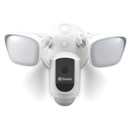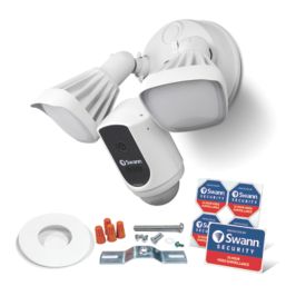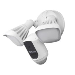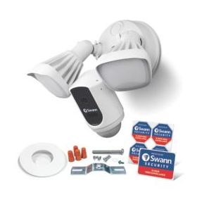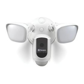 Outdoor security system that combines a 1080p Wi-Fi camera with 2-way audio, a siren, and 2 x powerful floodlights. Once triggered, the floodlights turn on, a loud siren sounds and 2-way audio allows talk back from a mobile device to deter intruders. Alerts and video clips received whenever floodlight detects motion. Supplied with mounting bracket and hardware.
